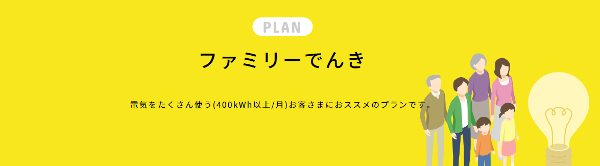 | Japan電力 | 毎月400kWh以上利用する ファミリー世帯におすすめ |