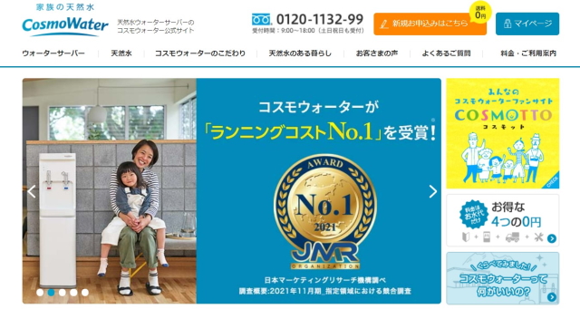 初回申込時にかかる手数料やサーバーのレンタル料等が初月無料で、以降は3,300円で利用ができるうえ、毎月の水代は毎月支払っている水道代で賄えるので家計的にも助かる一面を持っています。
