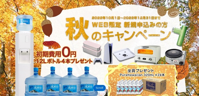 現在、Webサイトから新規申し込みをされた方限定で、初期費用0円+12Lのボトル4本を配送してくれます。