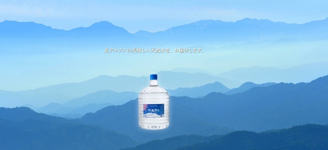 アルピナウォーターは、北アルプス「爺ヶ岳」の標高1,220m地点から湧き出る原水を使用しています。