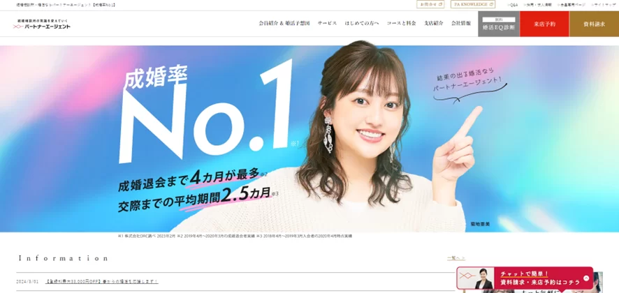 パートナーエージェントは、実績面で信頼できる結婚相談所です。