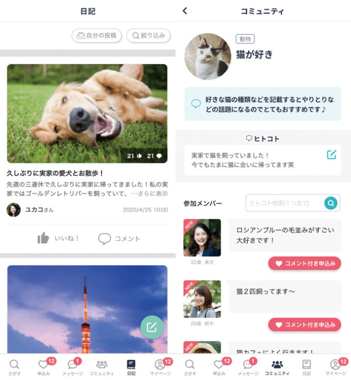 また、ブライダルネットには日記やコミュニティ機能があって、SNSのような気軽なコミュニケーションがとりやすく、自然な流れで仲良くなっていけるのも特徴。