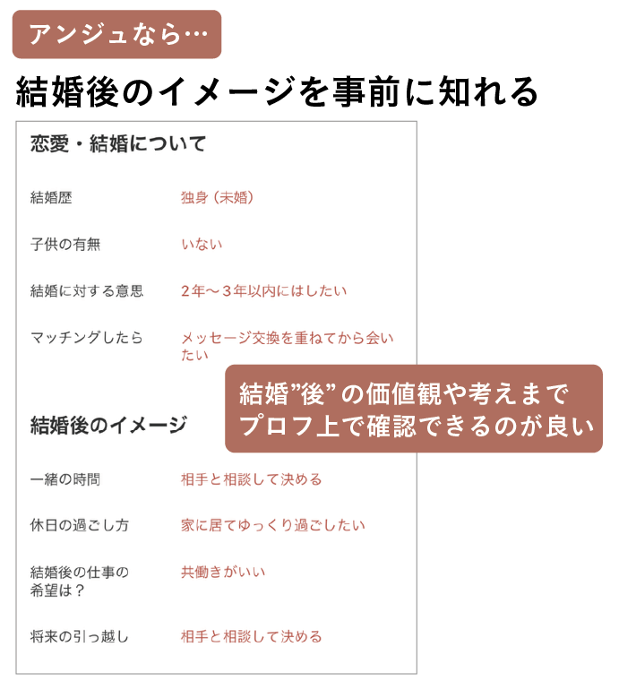 アンジュはプロフィールが結婚特化