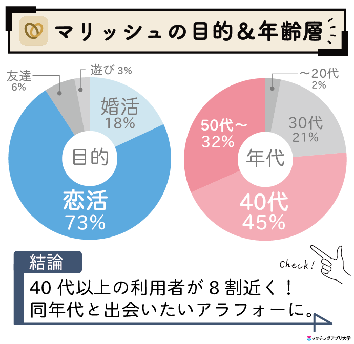 • アラサー・アラフォー世代が中心。真面目に真剣に婚活しているユーザーが多い