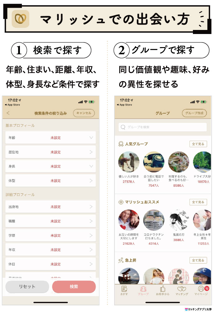 条件を指定し絞り込み検索をして出会う