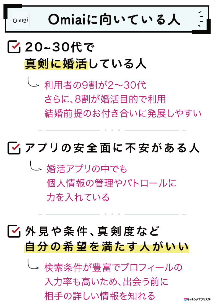 Omiaiをおすすめしたい人の特徴をまとめました。