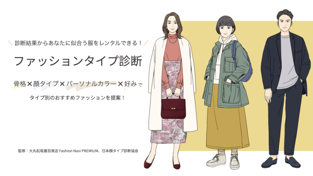 AnotherADdressは、洗練されたブランドの中から自由に選べるファッションサブスクリプションサービス。ファッションタイプ診断も可能です。骨格×顔タイプ×パーソナルカラー×好みで、タイプ別のおすすめファッションを提案します。