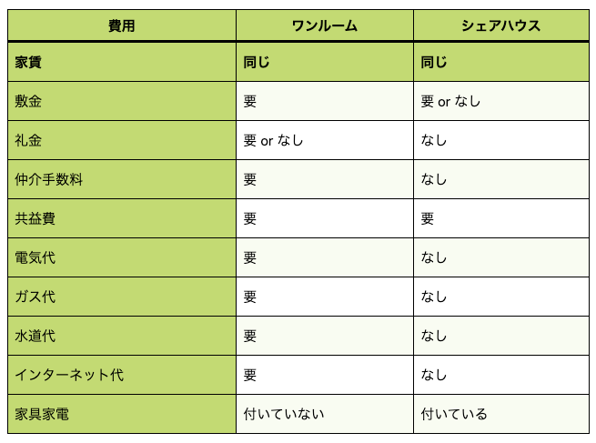 仮に家賃が同じだとしても、全体を見ればシェアハウス暮らしのほうがオトクです。