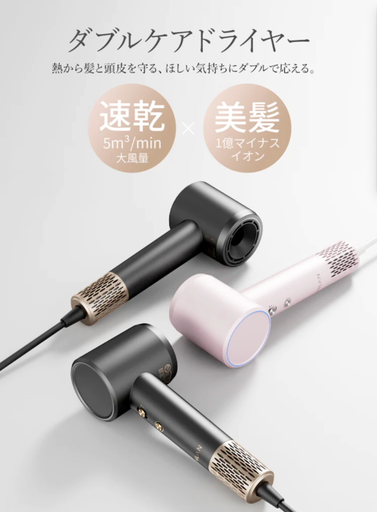3. 【美人百花速乾ドライヤー部門NO1】ANLAN ダブルケアドライヤー 速乾 軽量 5m³/min大風量 1億高濃度マイナスイオン